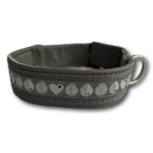 Gurtband grau, Herzchenborte grau, Lederpolster grau, Ringe Edelstahl