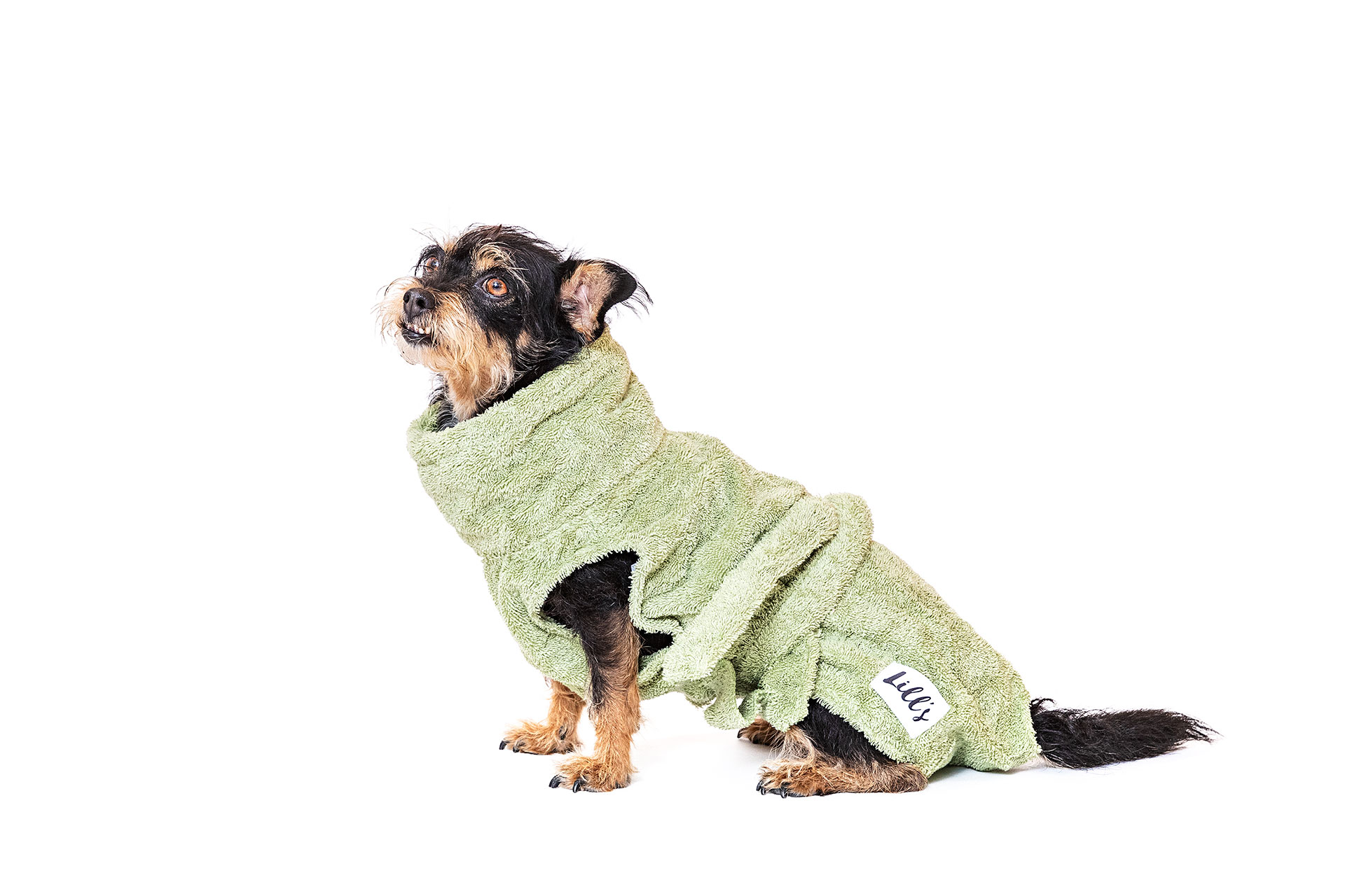Lill’s Hundebademantel aus Bio-Baumwolle “Green Leaf”